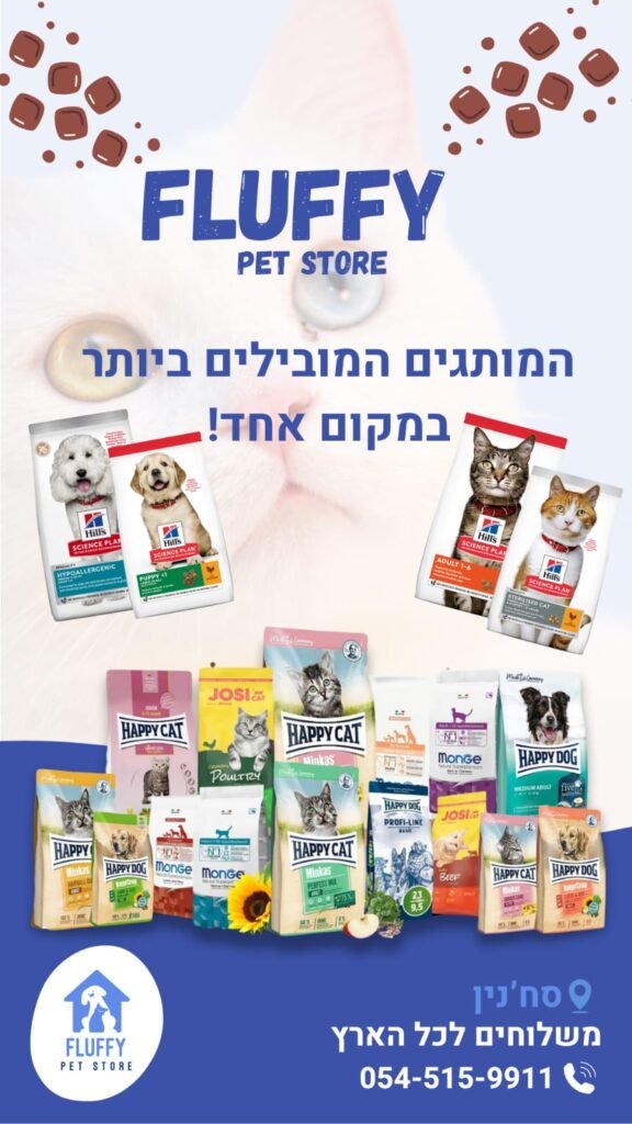 ב-Fluffy Pet Store תמצאו את כל מה שידאג לבריאות, לרווחה ולשמחת חיות המחמד שלכם – במקום אחד! אנו מציעים מבחר רחב של מזון איכותי לכלבים, חתולים, בעלי כנף, אוגרים ועוד, לצד צעצועים מהנים, אביזרים נוחים ומוצרי טיפוח ברמה גבוהה.