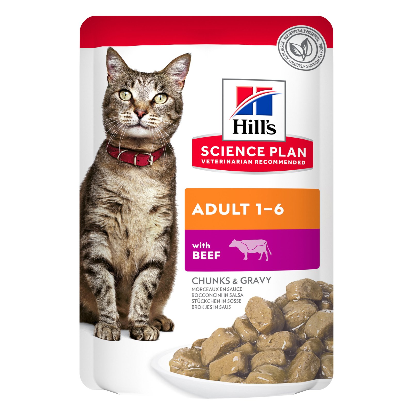 נתחי בקר ברוטב עבור חתולים בוגרים, עם חלבון ממקור איכותי לסיוע בבניית מסת שריר רזה.