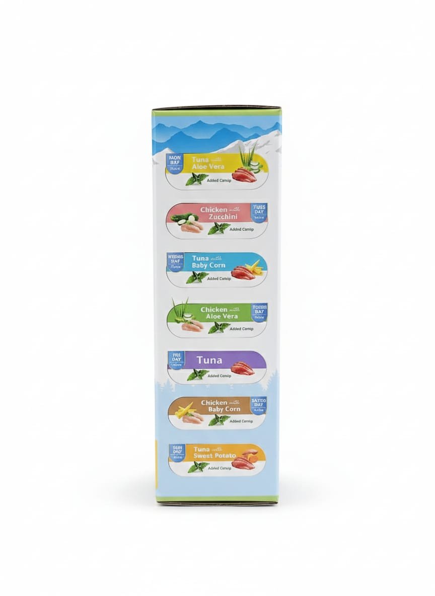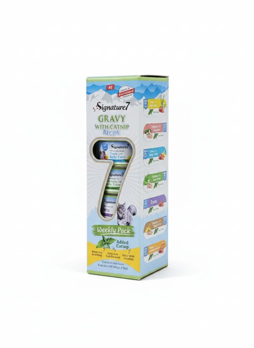 מזון רטוב לחתולים ברוטב עשיר, עם תוספת קטניפ טבעי לעידוד תיאבון והנאה.